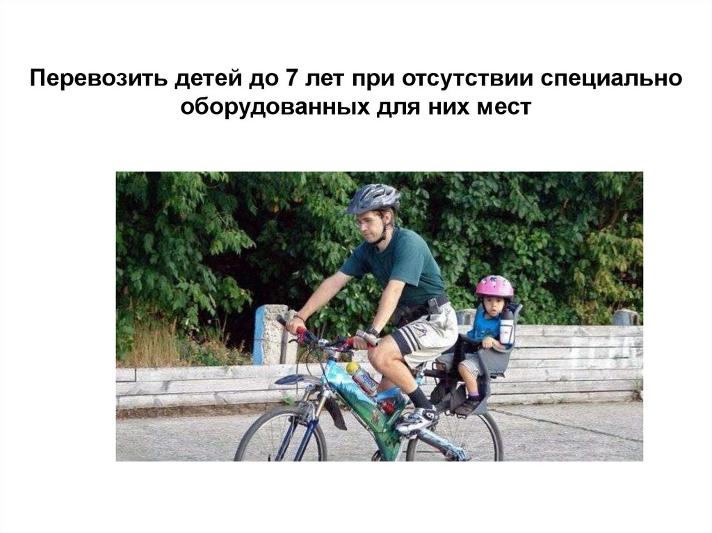 - велосипедист сопровождает велосипедиста в возрасте до 7 лет либо перевозит