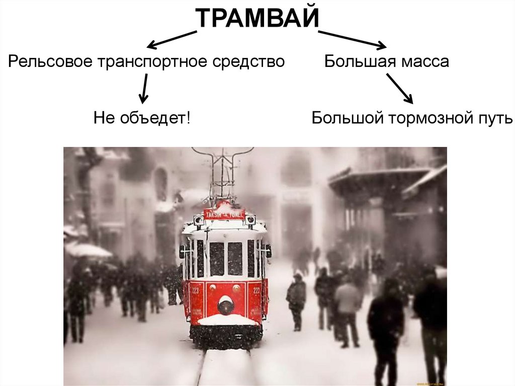 • Во-первых, трамвай, при равном праве на проезд, имеет