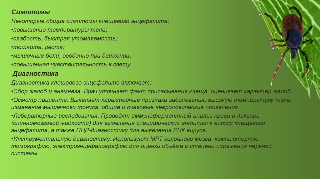 СимптомыНекоторые общие симптомы клещевого энцефалита: