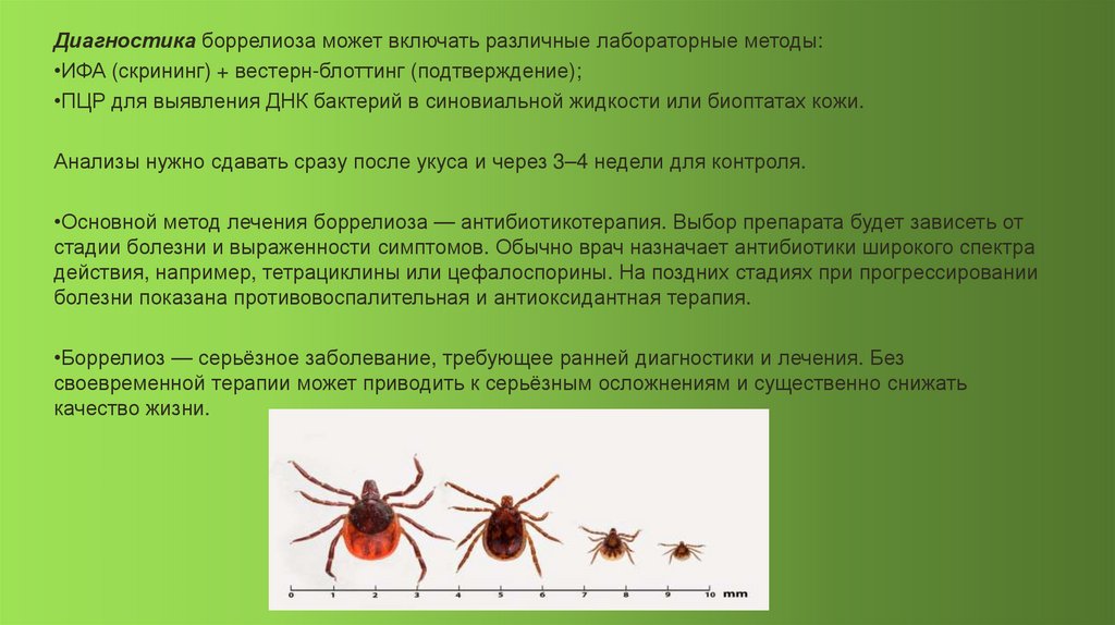 •Боррелиоз — серьёзное заболевание, требующее ранней диагностики и лечения. Без