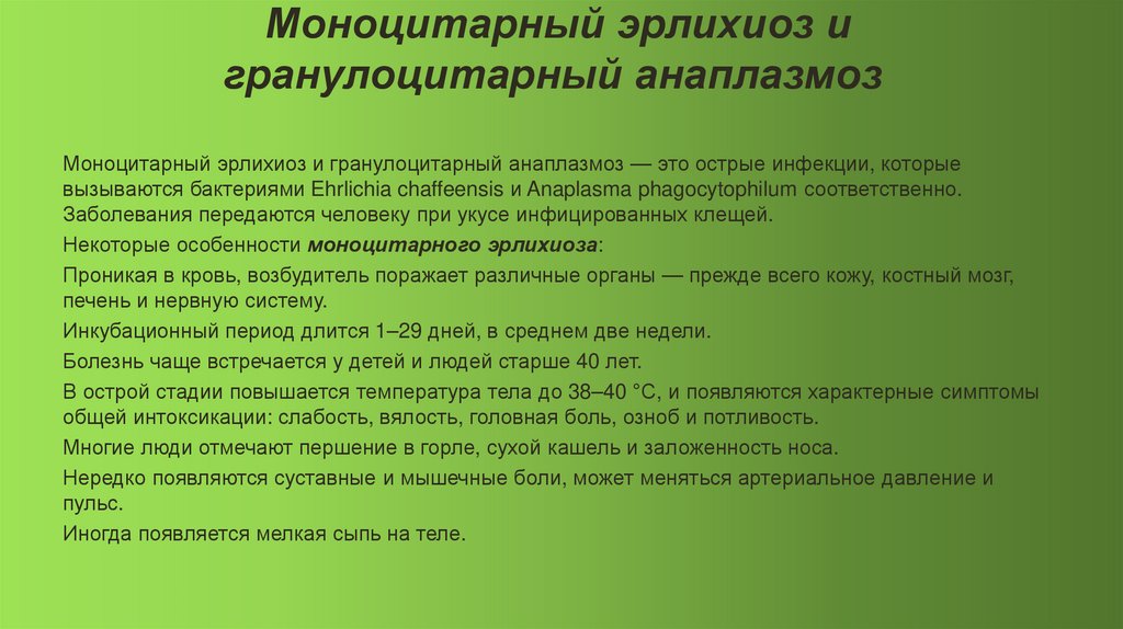 Моноцитарный эрлихиоз игранулоцитарный анаплазмоз