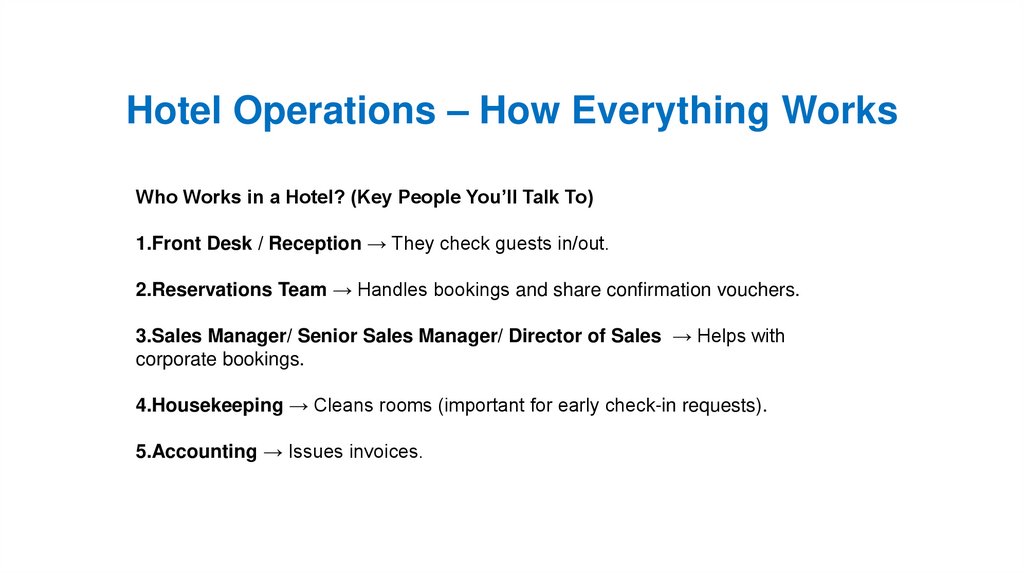 Hotel Operations – How Everything WorksWho Works in a Hotel? (Key People You’ll Talk To)