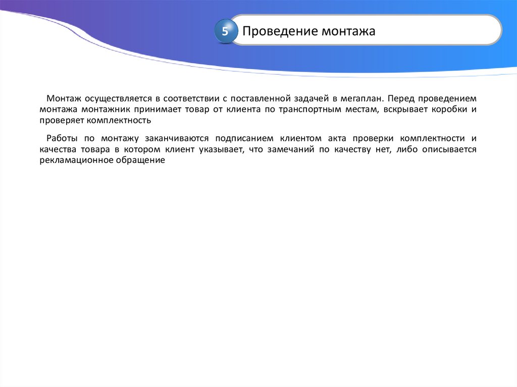монтажа монтажник принимает товар от клиента по транспортным местам, вскрывает коробки и