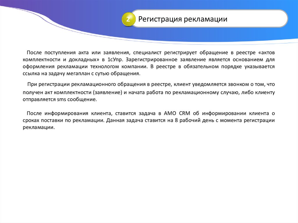 оформления рекламации технологом компании. В реестре в обязательном порядке указывается