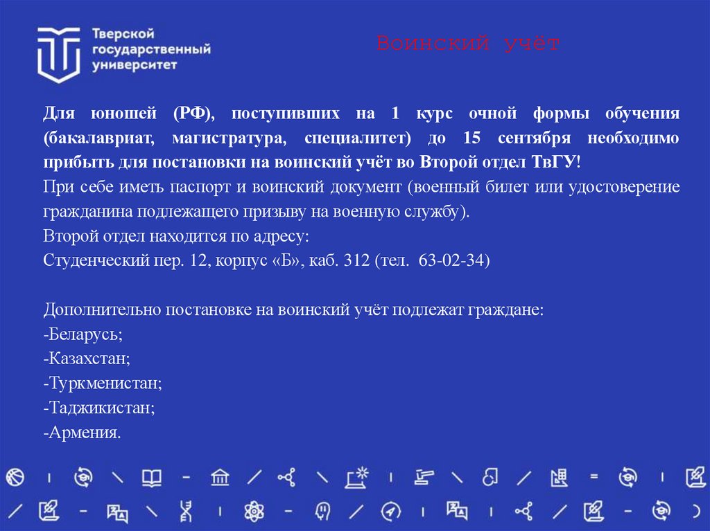 прибыть для постановки на воинский учёт во Второй отдел ТвГУ!