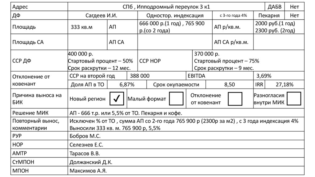 Исключен % от ТО , сумма АП со 2-го года 765 900 р (2300р за м2) , с 3 года индексация 4%