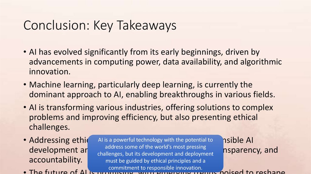 Conclusion: Key Takeaways• AI has evolved significantly from its early beginnings, driven by