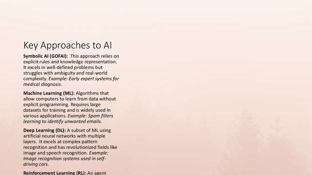 Key Approaches to AISymbolic AI (GOFAI): This approach relies on