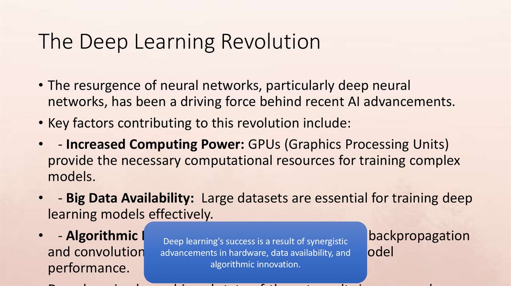 The Deep Learning Revolution• The resurgence of neural networks, particularly deep neural