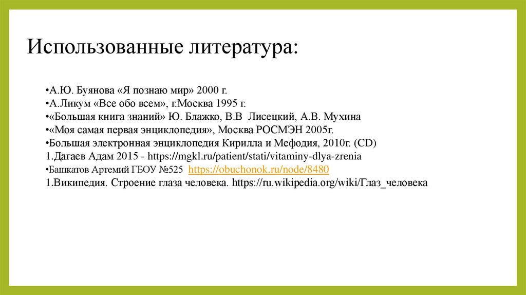 1.Википедия. Строение глаза человека. https://ru.wikipedia.org/wiki/Глаз_человека