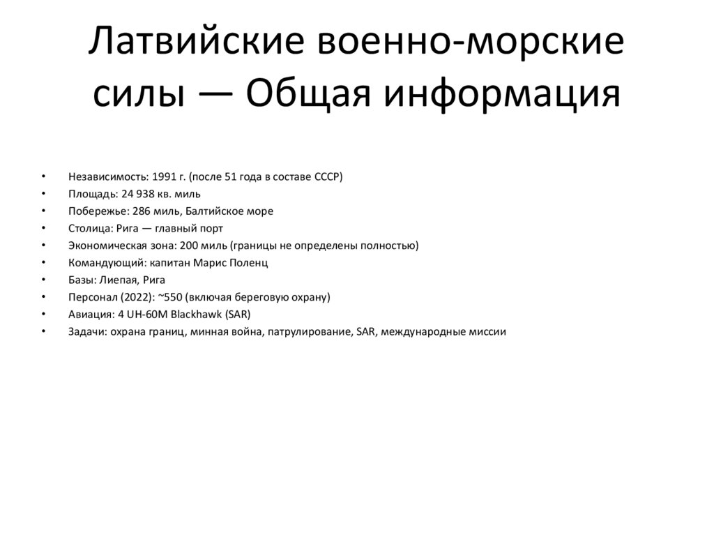 Латвийские военно-морскиесилы — Общая информация