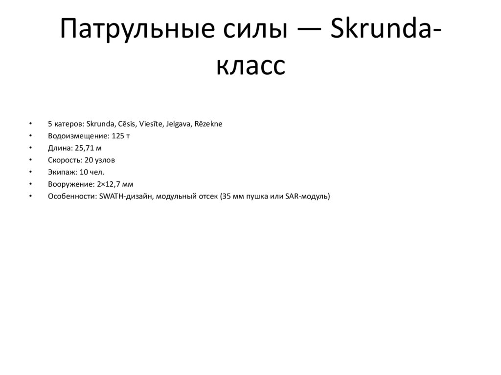Патрульные силы — Skrundaкласс5 катеров: Skrunda, Cēsis, Viesīte, Jelgava, Rēzekne