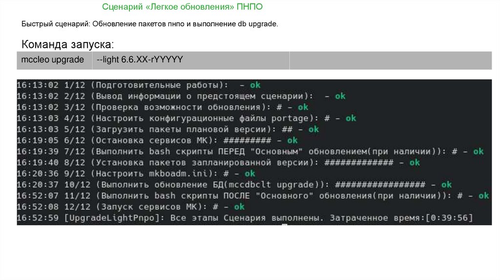 Сценарий «Легкое обновления» ПНПОБыстрый сценарий: Обновление пакетов пнпо и выполнение db upgrade.