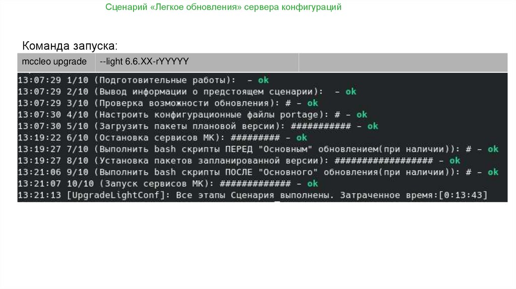 Сценарий «Легкое обновления» сервера конфигурацийКоманда запуска: