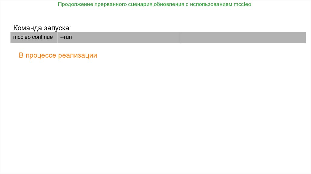 Продолжение прерванного сценария обновления с использованием mccleoКоманда запуска: