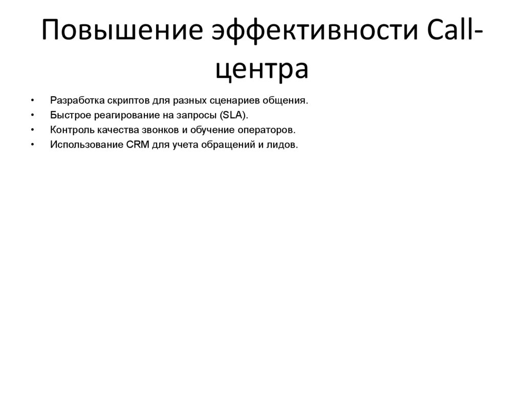 Повышение эффективности CallцентраРазработка скриптов для разных сценариев общения.