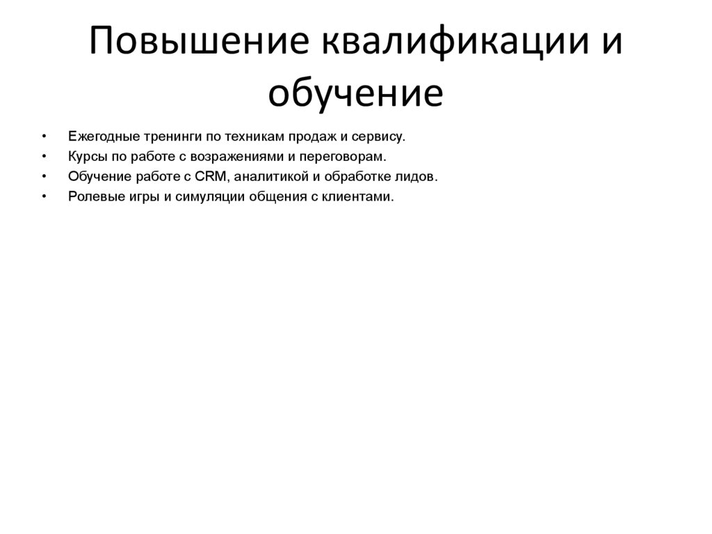 Ежегодные тренинги по техникам продаж и сервису.