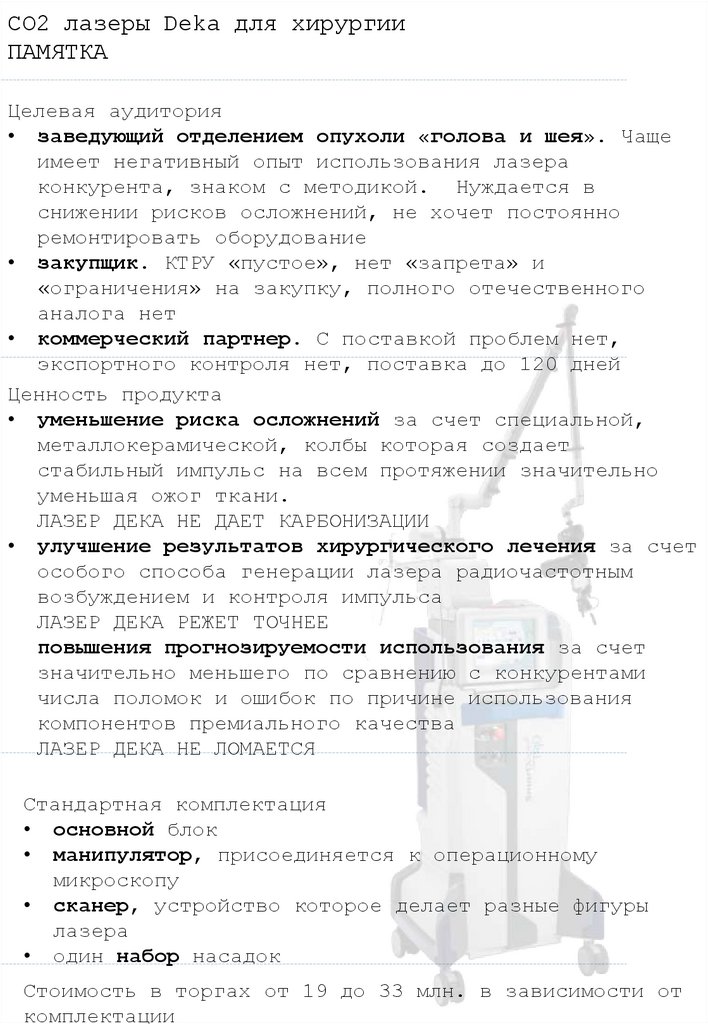 СО2 лазеры Deka для хирургииПАМЯТКА