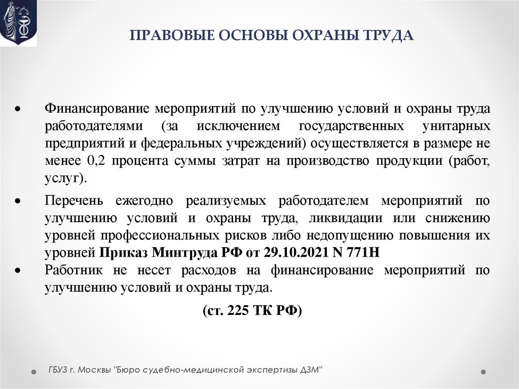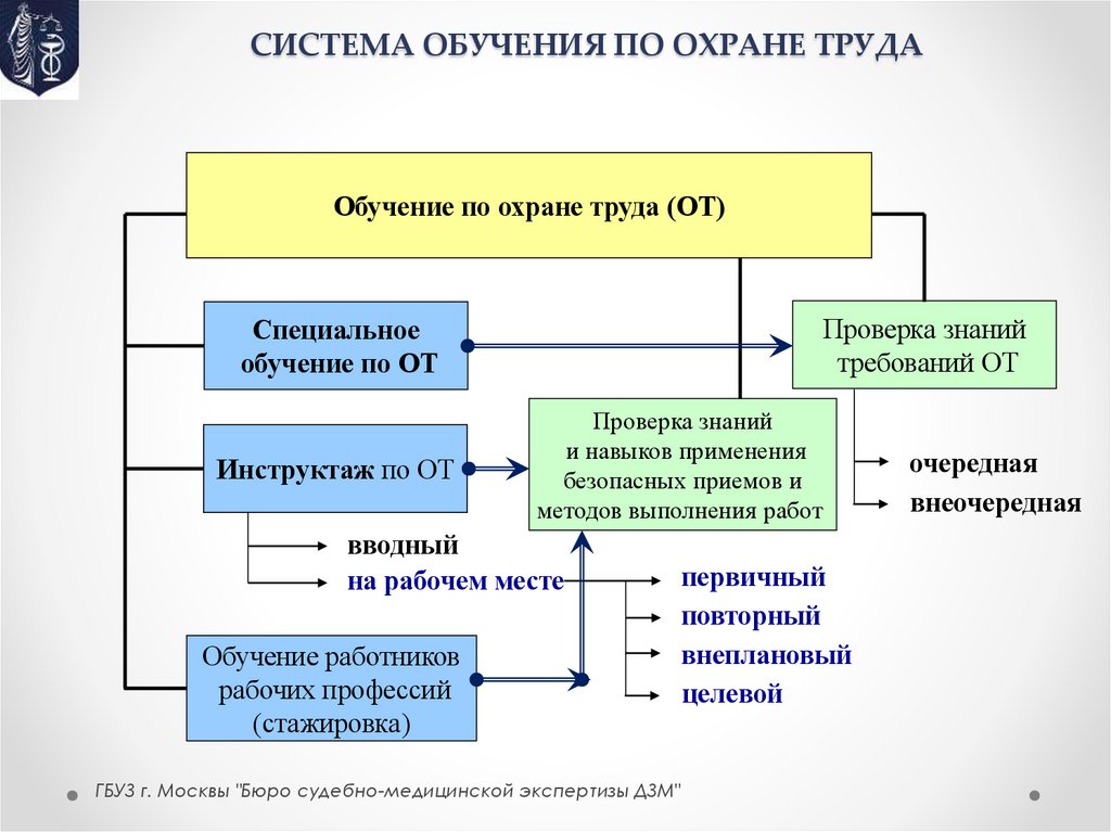 труда, обучения безопасным методам и приемам выполнения работ, обучения по оказанию первой помощи