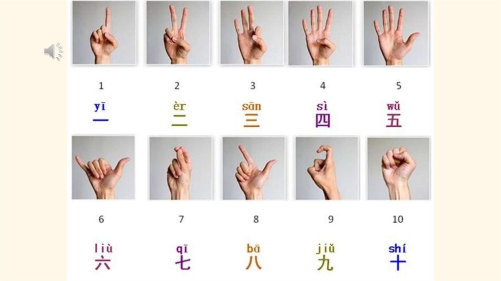 • Выучить цифры от 1 до 10 (название и обозначение на пальцах)