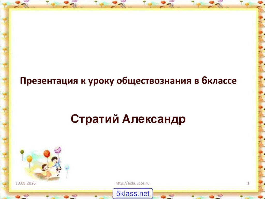Презентация к уроку обществознания в 6классеСтратий Александр