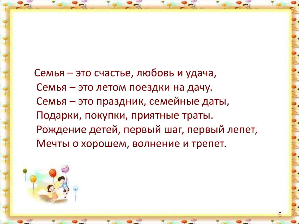 Семья – это счастье, любовь и удача,Семья – это летом поездки на дачу.