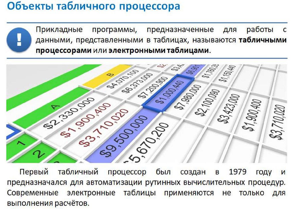 Технологии обработки табличной информации. Табличный процессор microsoft excel