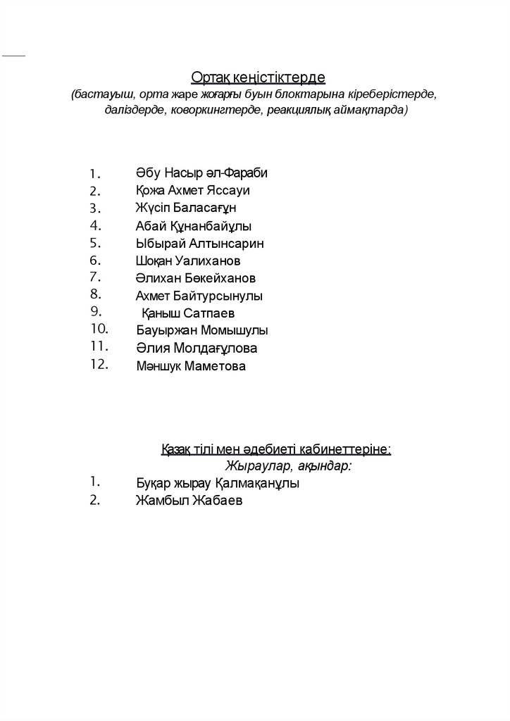 Қазақ тілі мен әдебиеті кабинеттеріне: