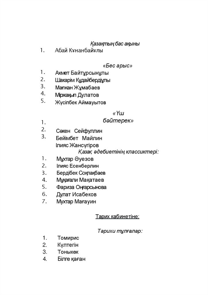 Қазақ тілі мен әдебиеті кабинеттеріне: Жыраулар, ақындар