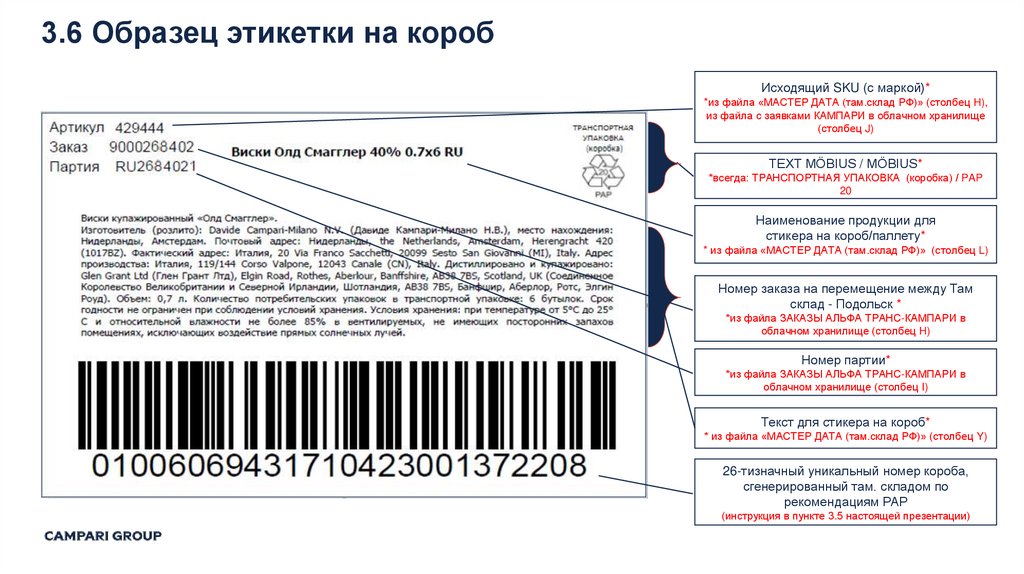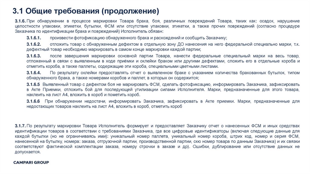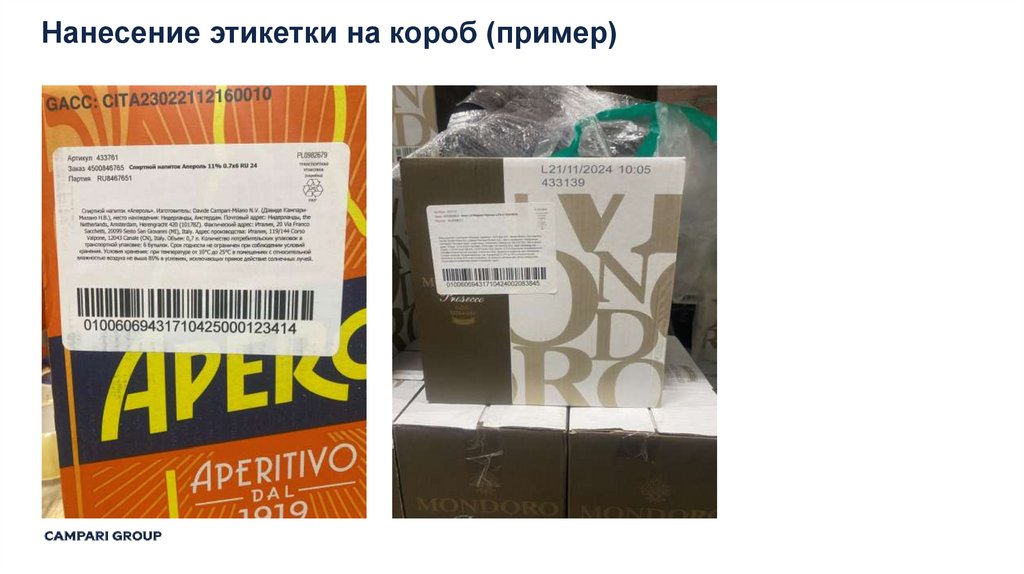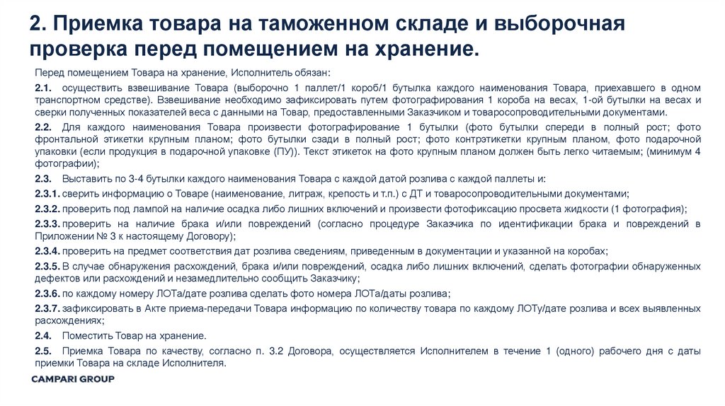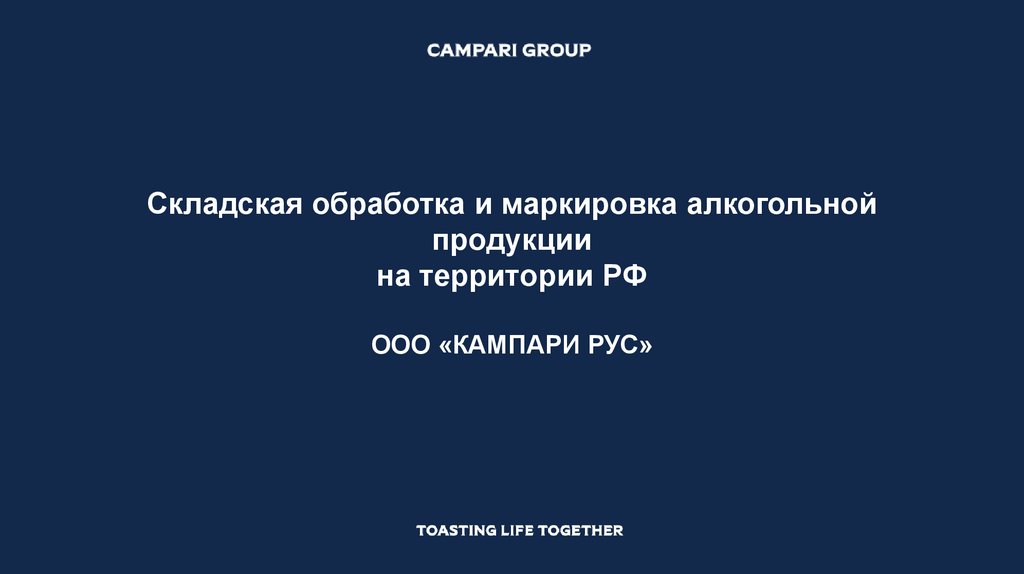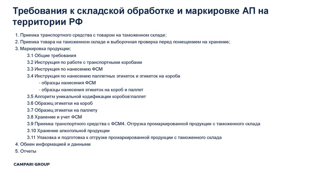 1. Складская обработка и маркировка алкогольной продукции на территории РФ ООО «КАМПАРИ РУС»