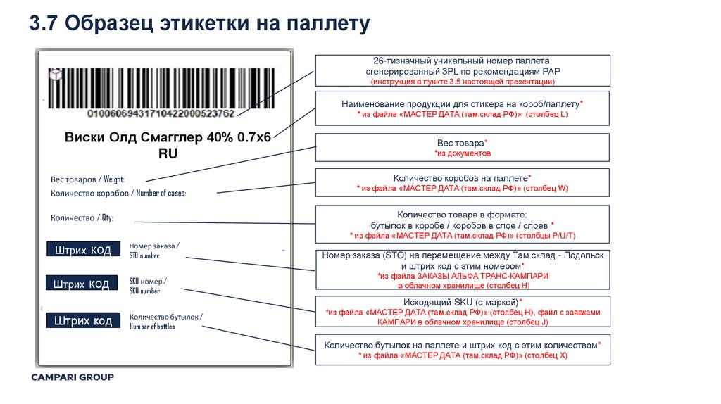 3.7 Образец этикетки на паллету