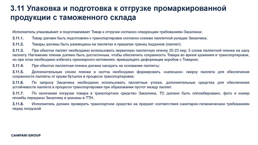 3.11 Упаковка и подготовка к отгрузке промаркированной продукции с таможенного склада