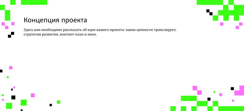 Концепция проектаЗдесь вам необходимо рассказать об идее вашего проекта: какие ценности транслирует,