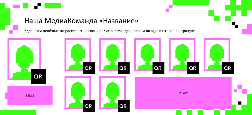 Наша МедиаКоманда «Название»Здесь вам необходимо рассказать о своих ролях в команде, о вашем вкладе в итоговый продукт