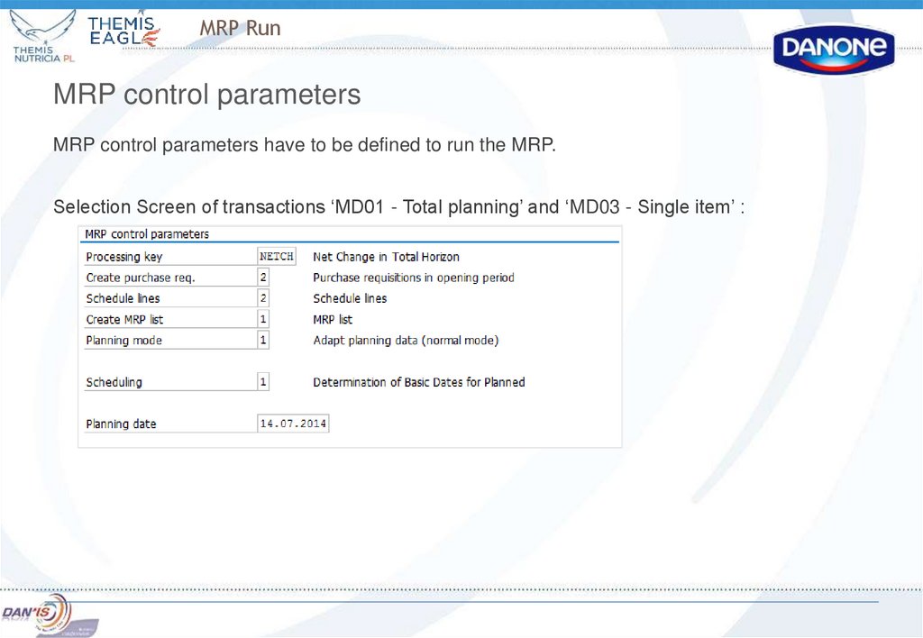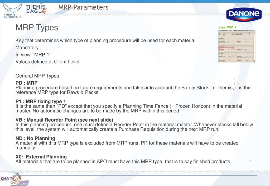 MRP parameters should