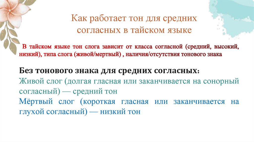 Как работает тон для среднихсогласных в тайском языке