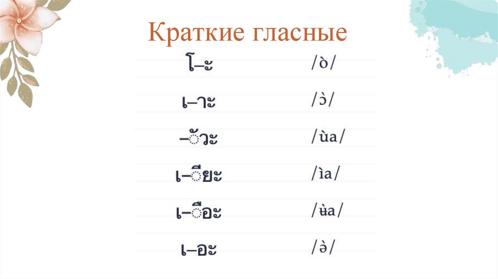 Краткие гласные7.