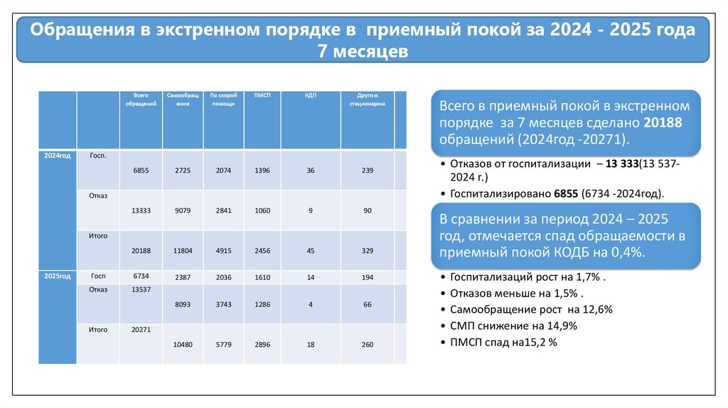 Обращения в экстренном порядке в приемный покой за 2024 - 2025 года7 месяцев