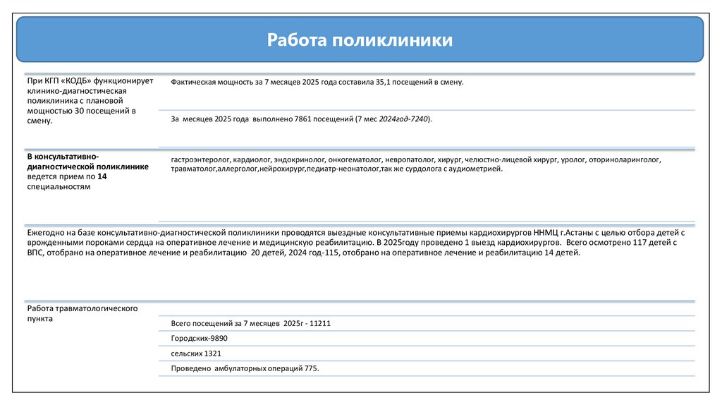 Анализ деятельности КГП «Костанайская областная детская больница» за 7 месяцев 2025 года