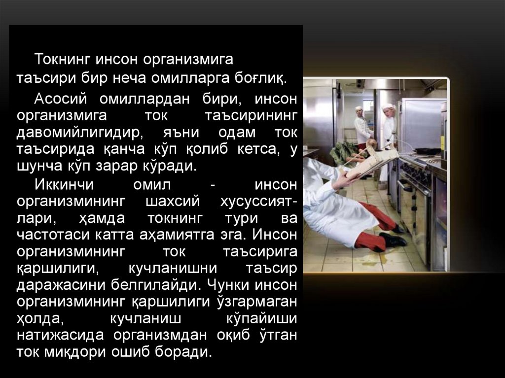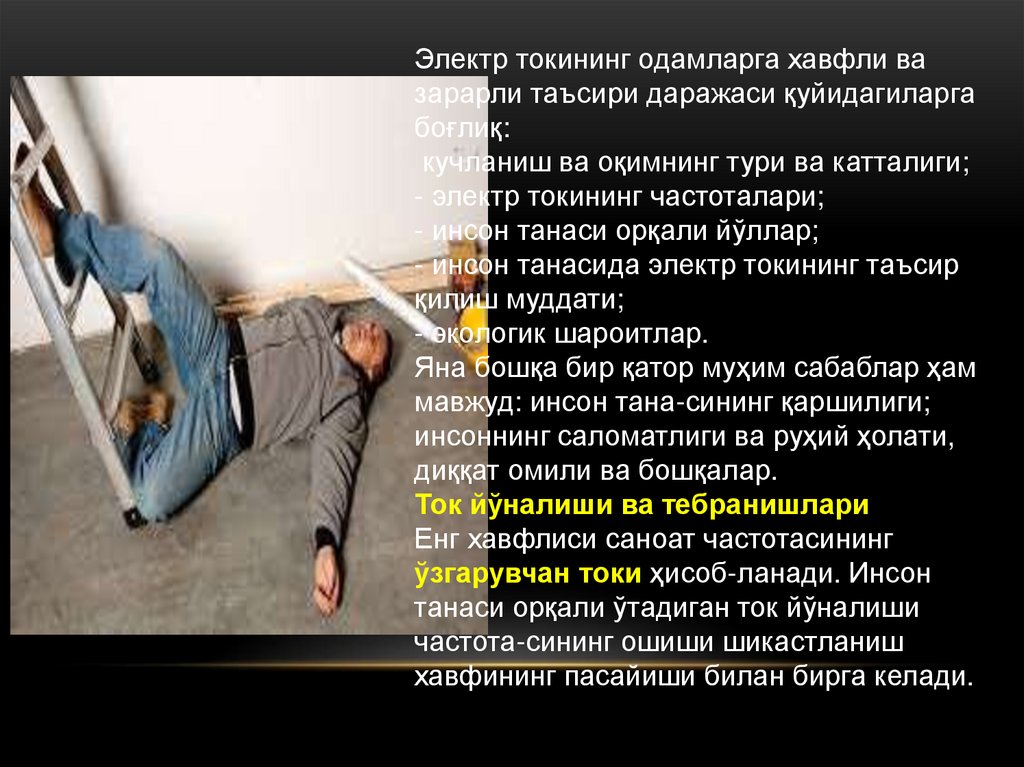 ИНСОННИ ЭЛЕКТР ТОКИ УРИШИ САБАБЛАРИНИБЕЛГИЛОВЧИ ОМИЛЛАР
