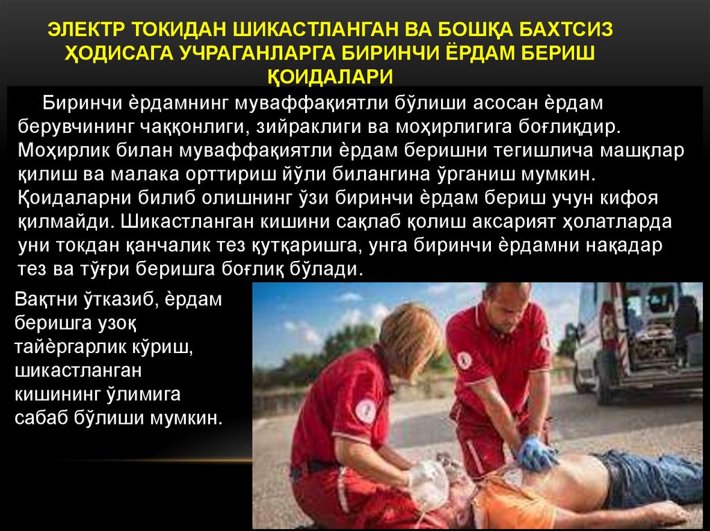 ажратишга, шикастланган кишига биринчи ѐрдам беришга асло