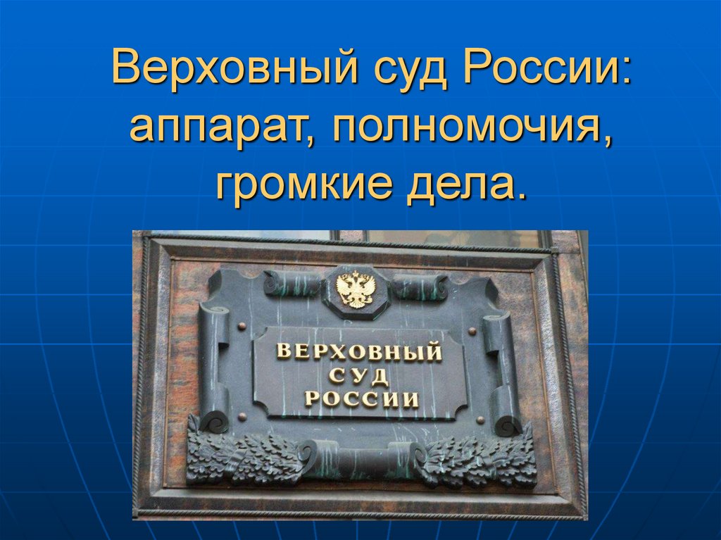 1. Верховный суд России: аппарат, полномочия, громкие дела.
