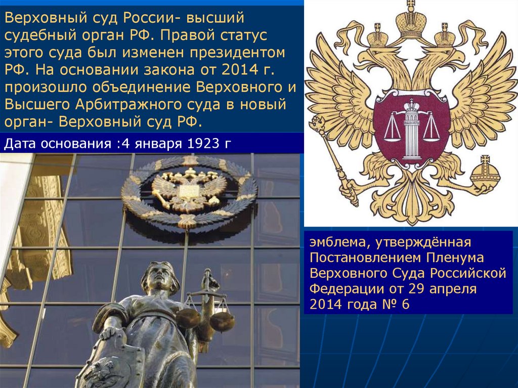 Верховный суд России- высшийсудебный орган РФ. Правой статус