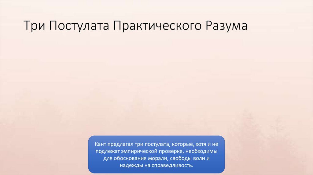 Три Постулата Практического РазумаКант предлагал три постулата, которые, хотя и не