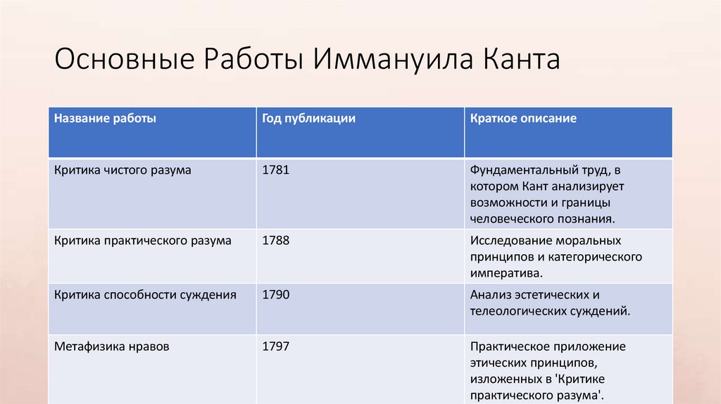 Основные Работы Иммануила КантаНазвание работы