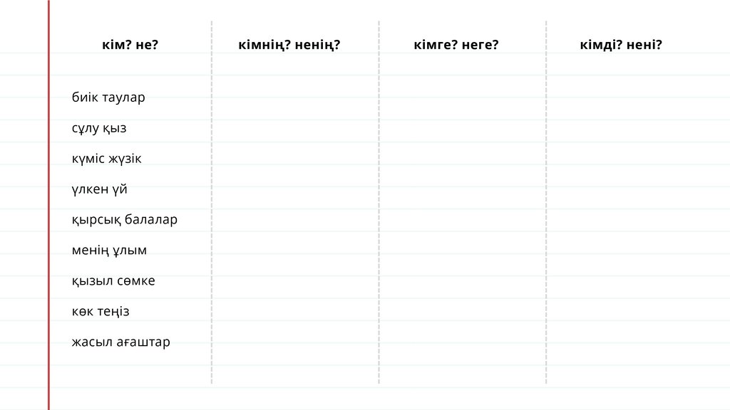 кім? не?кімнің? ненің?