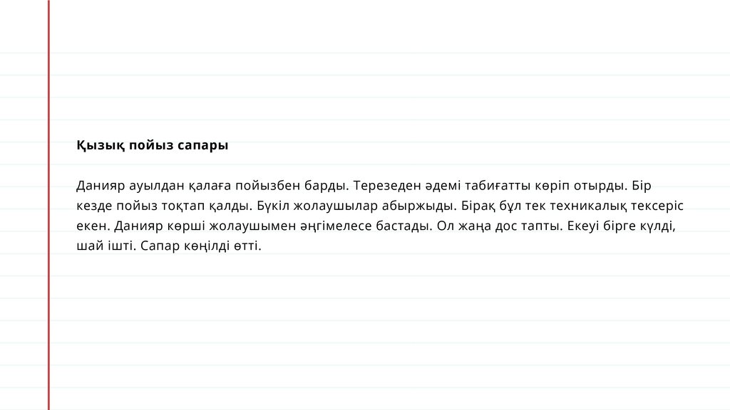 Қызық пойыз сапарыДанияр ауылдан қалаға пойызбен барды. Терезеден әдемі табиғатты көріп отырды. Бір
