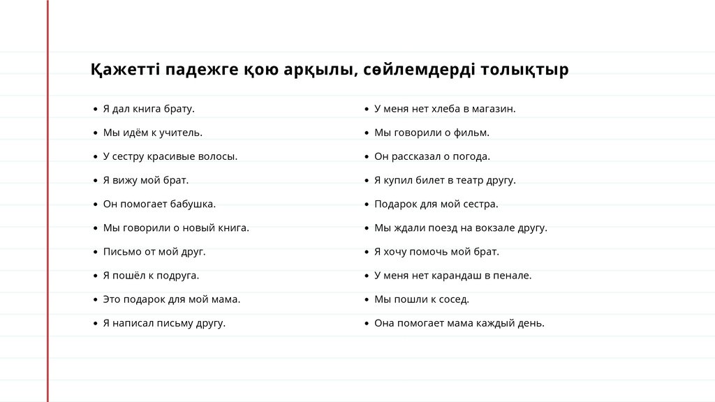 Қажетті падежге қою арқылы, сөйлемдерді толықтырЯ дал книга брату.