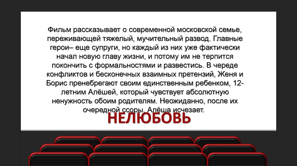 Борис пренебрегают своим единственным ребенком, 12летним Алёшей, который чувствует абсолютную