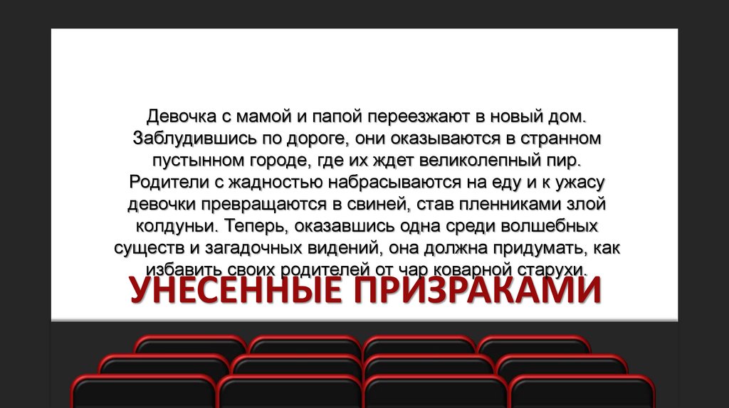 Девочка с мамой и папой переезжают в новый дом.Заблудившись по дороге, они оказываются в странном